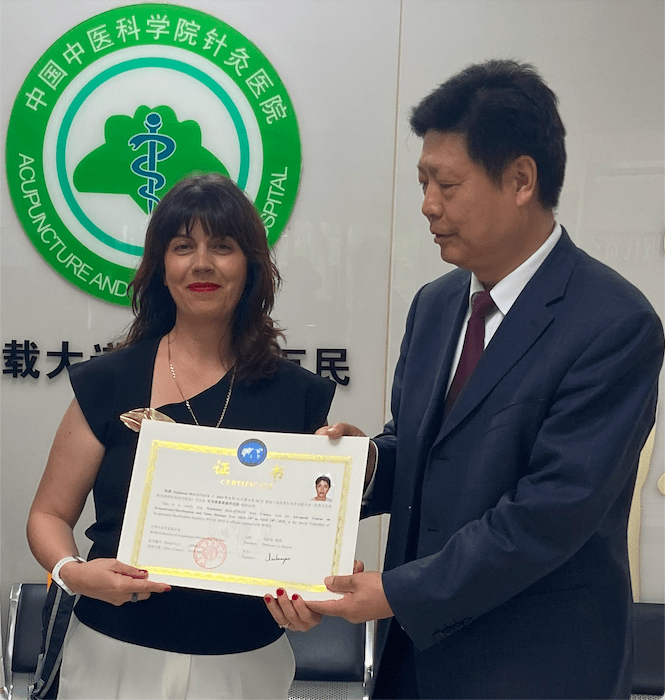 Formée pendant 5 ans en MTC, puis certifiée par la WFAS (World Fédération of Acupuncture and Moxibustion Societies) de Pékin. Cet organisme international travaille avec l’OMS (Organisation Mondiale de la Santé), afin de développer l’acupuncture-moxibustion pour améliorer la santé dans le monde, et de promouvoir la coopération et la recherche dans le domaine de la MTC.